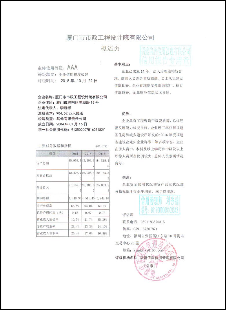 廈門市市政工程設(shè)計(jì)院有限公司2018