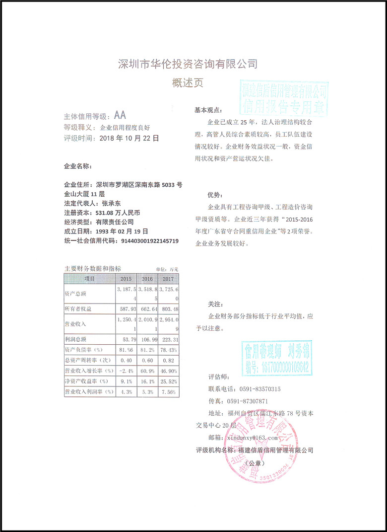 深圳市華倫投資咨詢有限公司2018