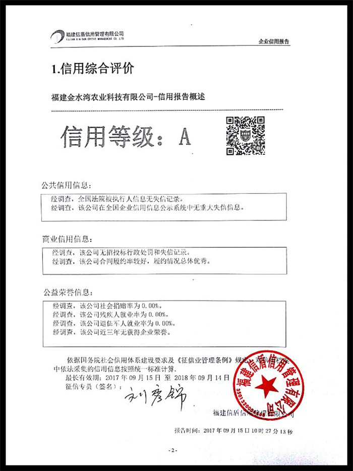 福建金水灣農(nóng)業(yè)科技有限公司 XDBG201709020