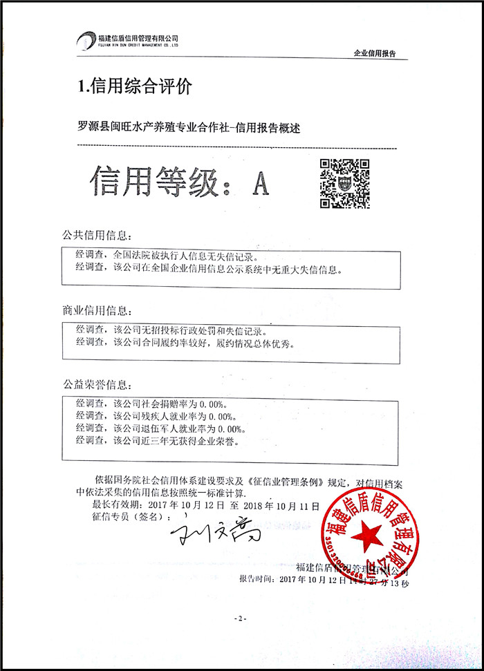 羅源縣閩旺水產養殖專業合作社 XDBG201710002
