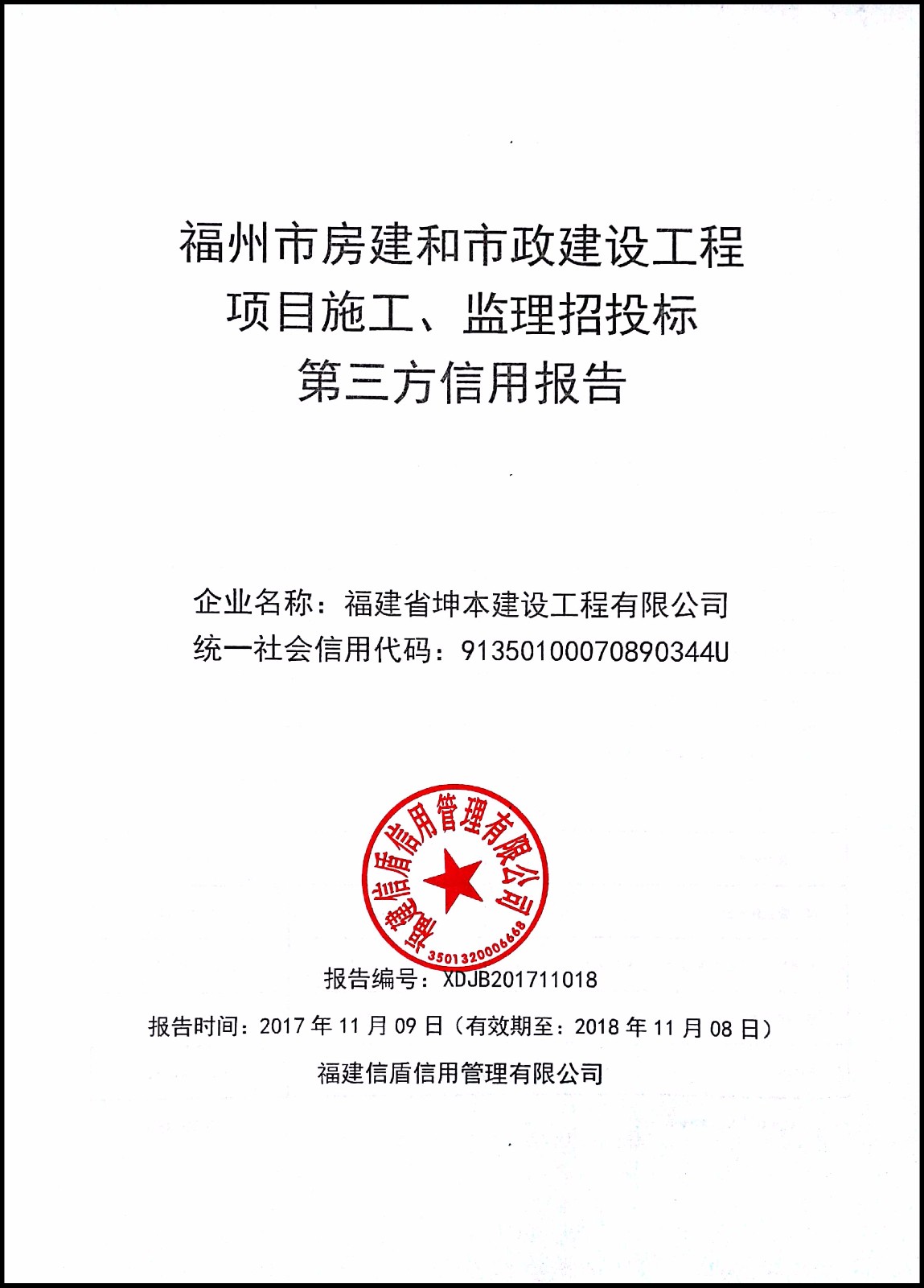福建省坤本建設工程有限公司 XDJB201711018