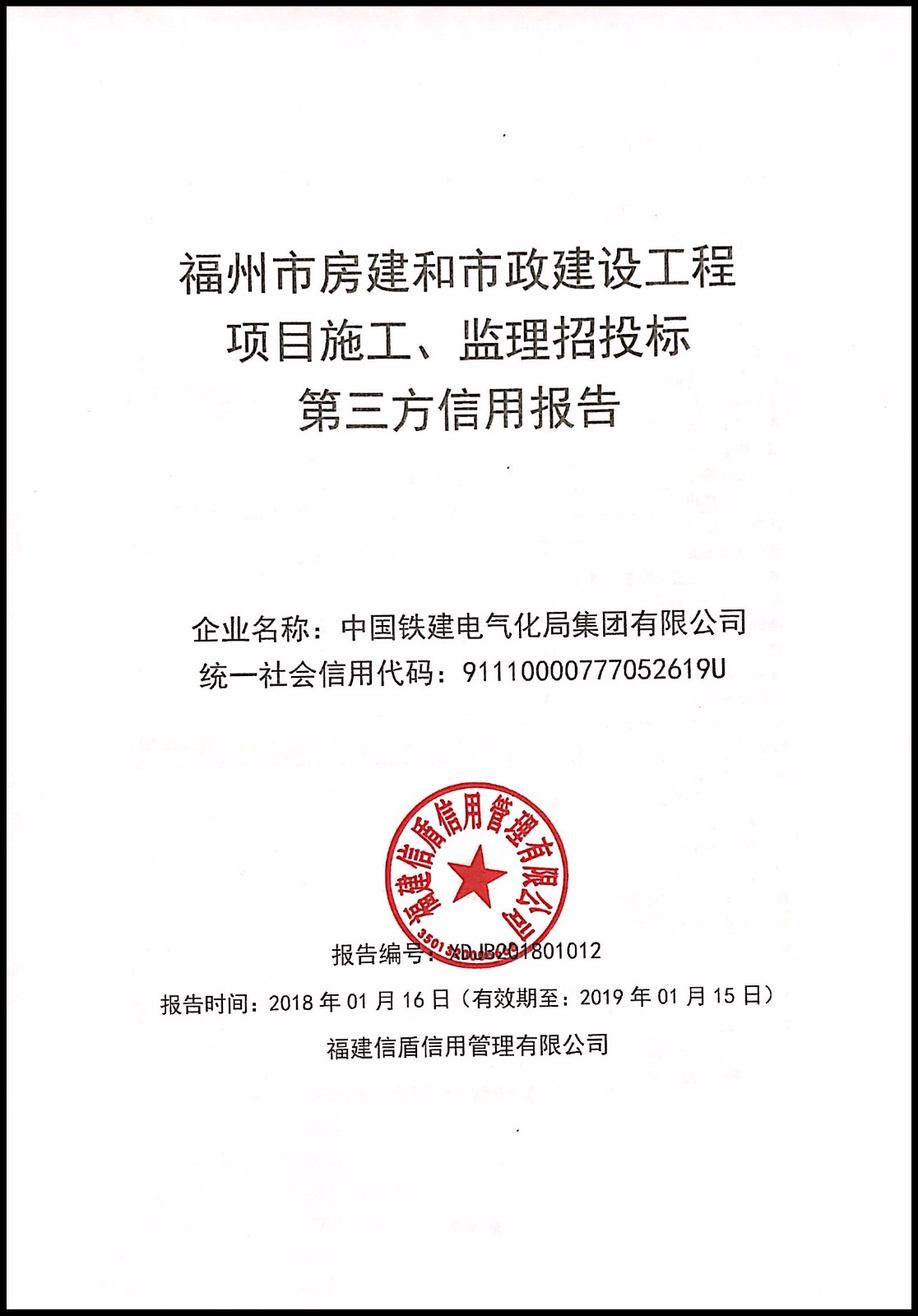 中國鐵建電氣化局集團有限公司 XDJB201801012