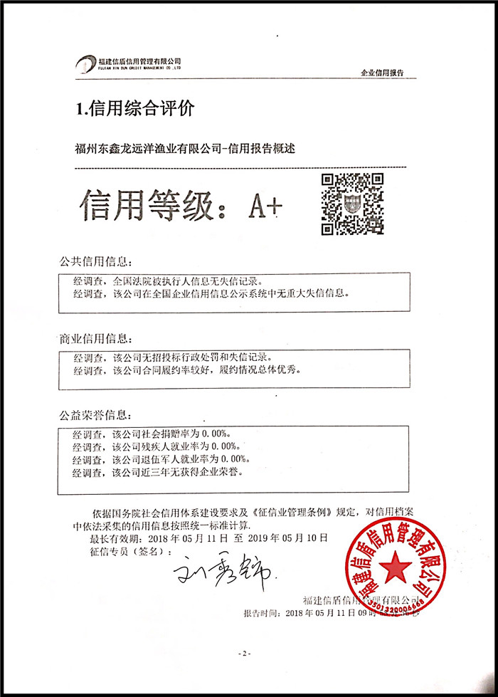 福州東鑫龍遠洋漁業有限公司 XDBG201805007