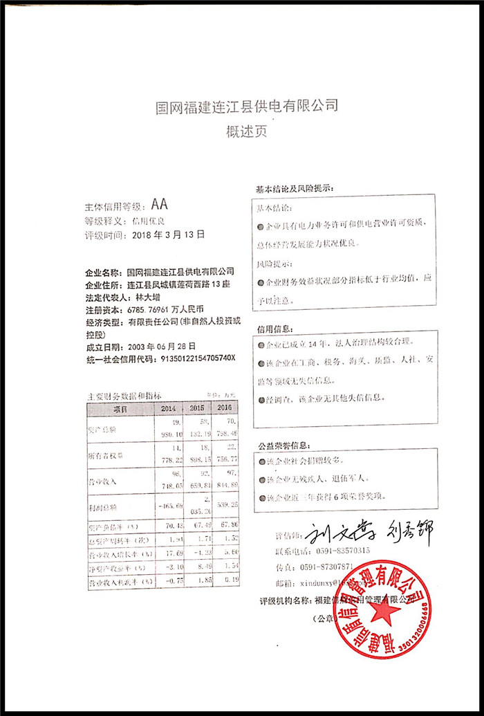 國網(wǎng)福建連江縣供電有限公司 XDPJ201803101