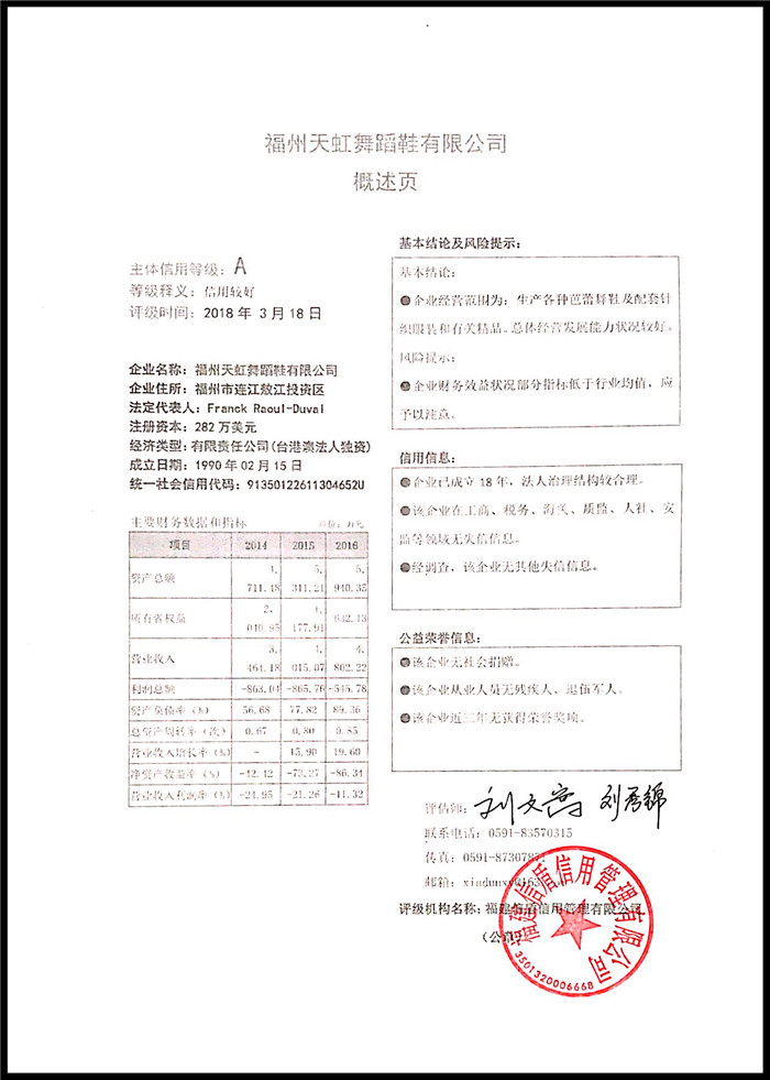 福州天虹舞蹈鞋有限公司 XDPJ201803167