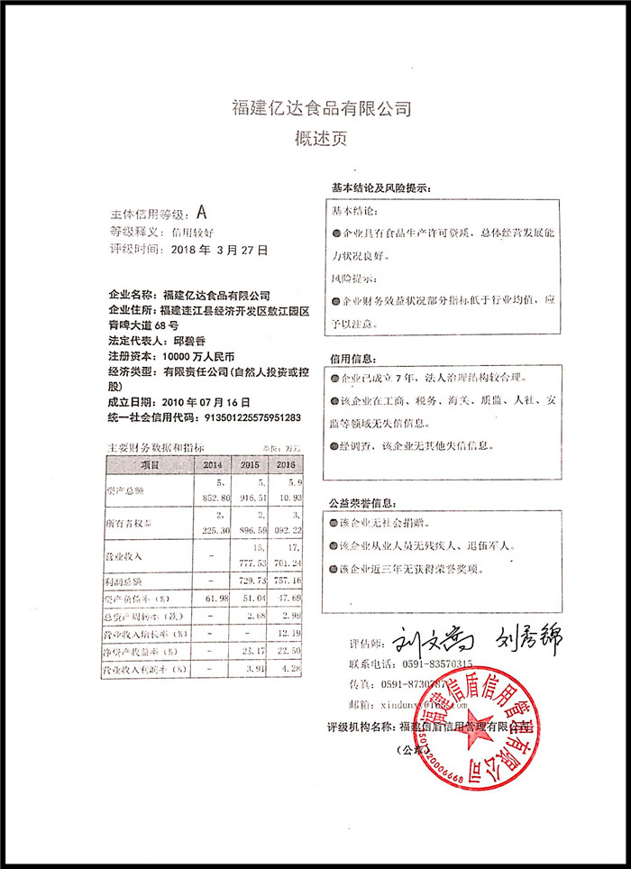 福建億達(dá)食品有限公司 XDPJ201803181