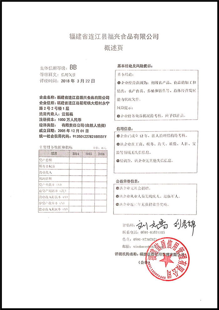 福建省連江縣福興食品有限公司 XDPJ201803193