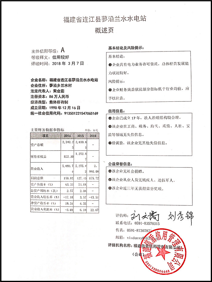 福建省連江縣蓼沿蘭水水電站 XDPJ201803200