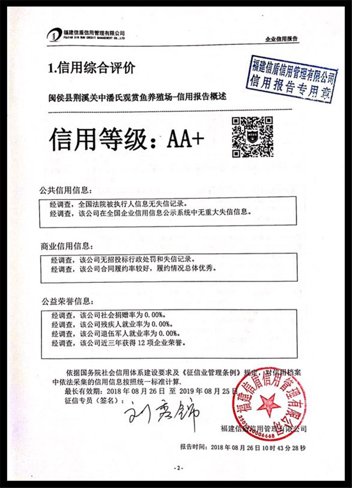 閩侯縣荊溪關(guān)中潘氏觀賞魚養(yǎng)殖場 XDBG201808006