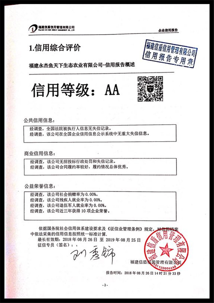 福建永杰魚天下生態農業有限公司 XDBG201808009