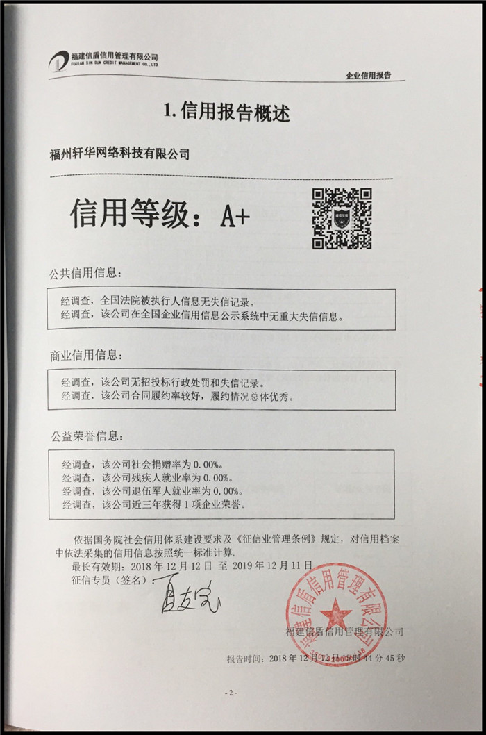福州軒華網絡科技有限公司 XDBG201812183