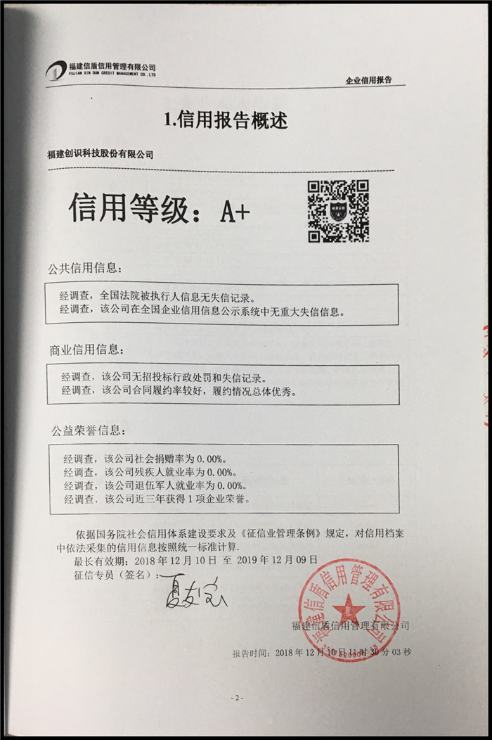 福建創(chuàng)識(shí)科技股份有限公司 XDBG201810068