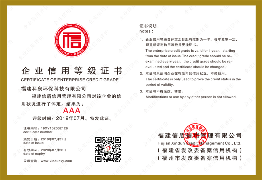 企業(yè)信用等級證書