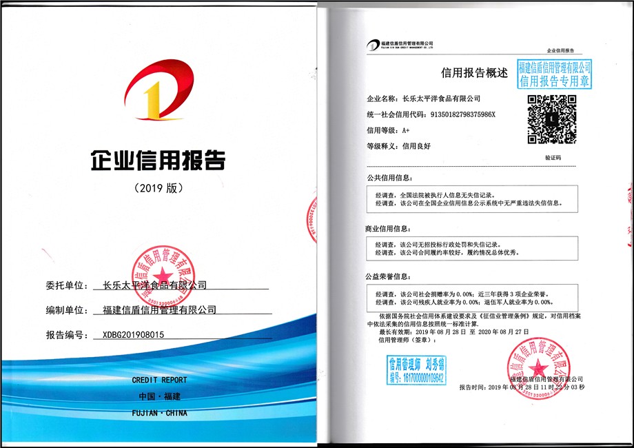 長(zhǎng)樂(lè)太平洋食品有限公司2019